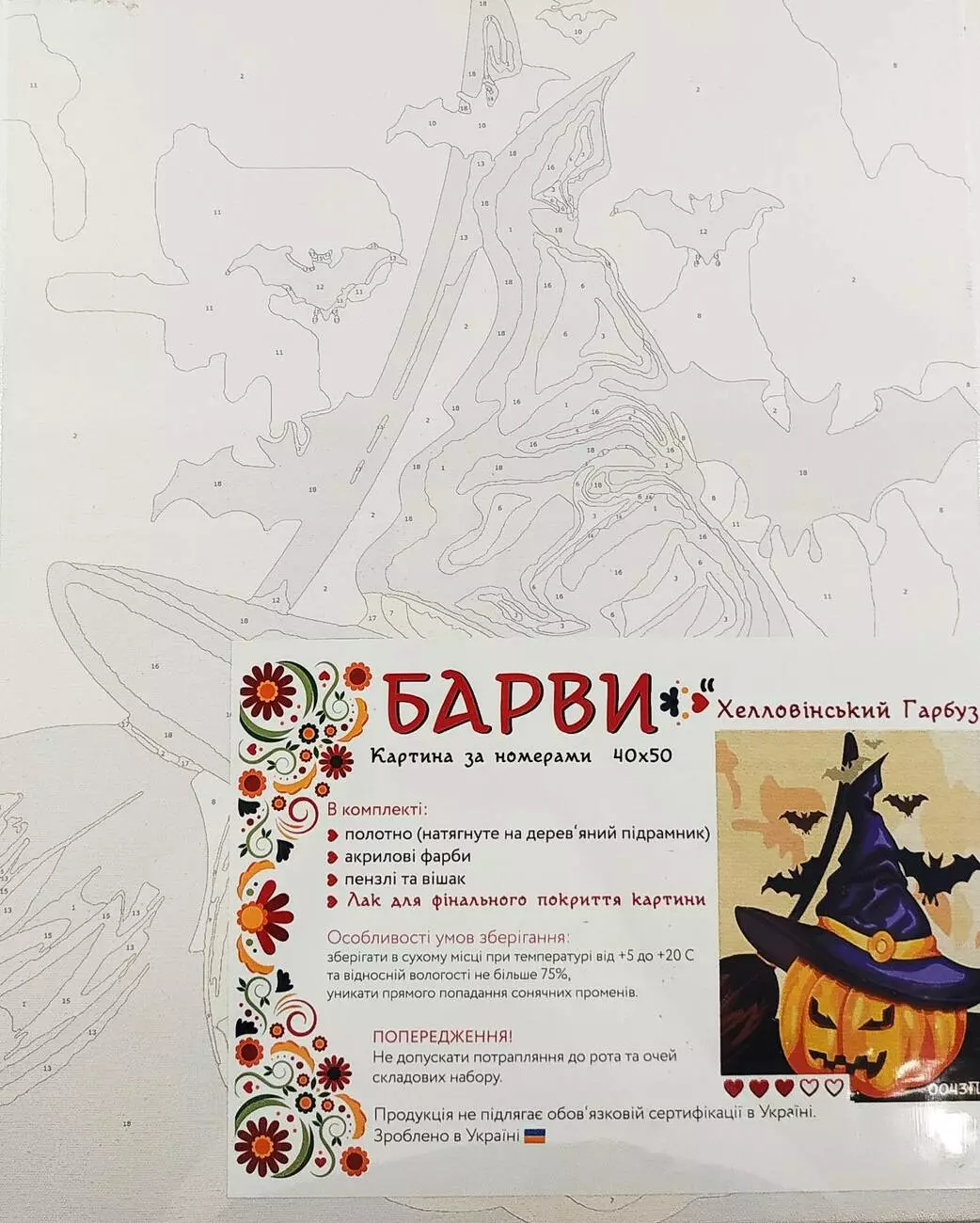 Відчуй себе справжнім художником! Використовуй розпис по номерам і твори шедеври! Дана картина добре прикрасить будь-який інтер'єр і подарує кожному твоєму гостю відчуття перебування вдома у справжнього генія! Увага! Кольори і чіткість картини можуть відрізнятися. Комплектація Набору для малювання: - натягнутий на дерев'яну рамку прогрунтоване полотно, з нанесеними і пронумерованими контурами квітів малюнка. Полотно і весь набір запаяний в стрейч плівку; - настінні кріплення 2 шт. і саморізи; - пронумеровані акрилові фарби в щільно закритих контейнерах (від 14 до 36 кольорів); - кисті (від 3 до 4 шт).