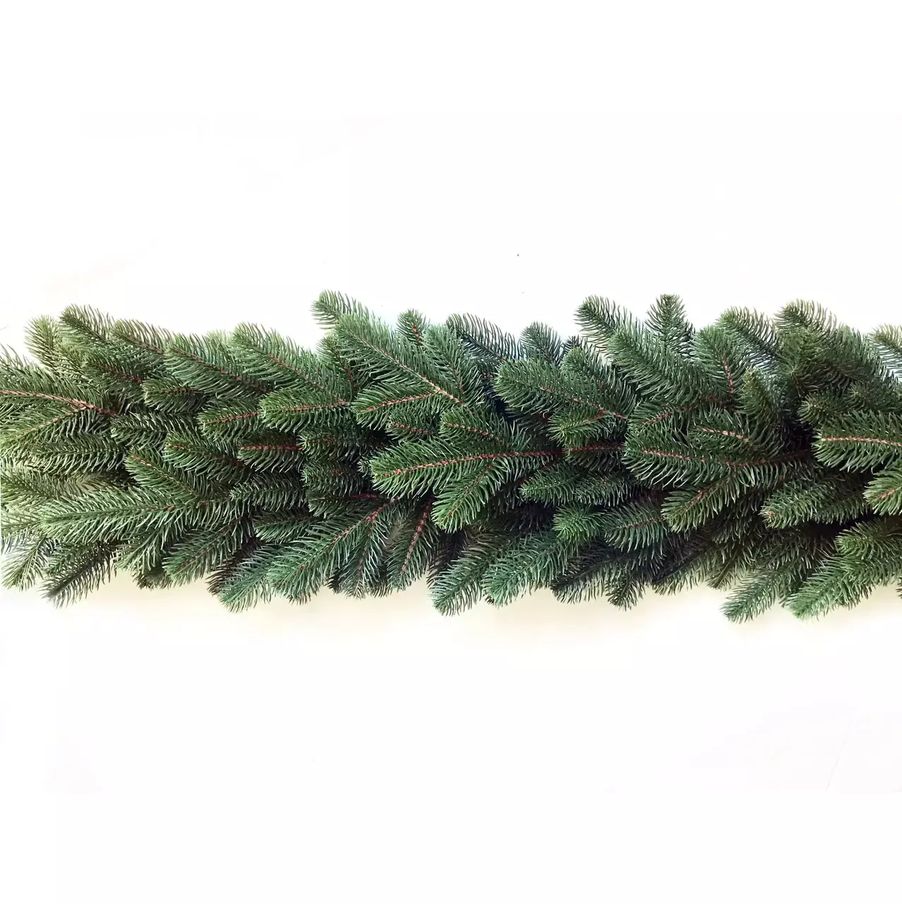Хвойна гірлянда виготовлена шляхом переплетення штучних гілочок ялинки. Всі гілки і голочки - 100% литі, вони виглядають, як хвоя живої ялинки, але м'якші і не колючі. Довжина гірлянди 1,2 м, ширина 30 см. Декоративна хвойна гірлянда допоможе прикрасити як квартиру всередині, так і будинок зовні. В інтер'єрі квартири або будинку така прикраса буде гармонійно виглядати на стінах, перилах сходів, арці дверей, каміні, шторах. Хвойні гірлянди будуть дуже добре виглядати біля входу і над вікнами будинку. Ними можна прикрасити балкон або альтанку, де, можливо, буде проходити частина свята. . Хвойна гірлянда в квартирі може не тільки прикрасити вікна чи двері, вона може стати центральною прикрасою святкового столу і будь-якої іншої горизонтальної площини. Кольорові кулі, квіти і свічки в красивих і надійних підсвічниках є вдалим акцентом в цій композиції. Завершує загальний вигляд інтер'єру підлогова ваза з хвойними гілками або вінок, що оформлені в тих сами тонах.