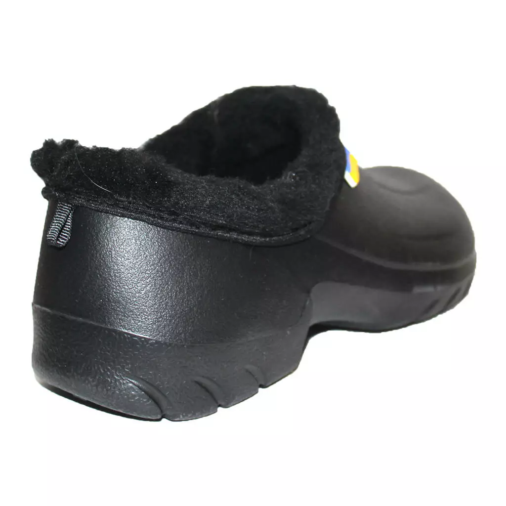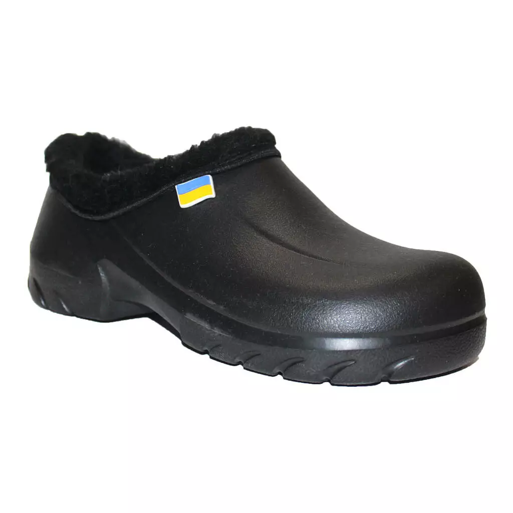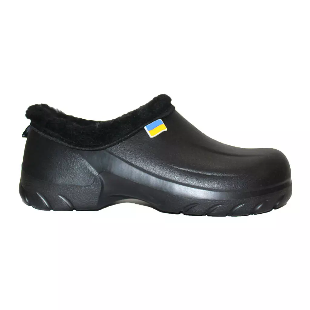 Чоловічі НАПІВОБШИТІ утеплені калоші - взуття на прохолодну дощову погоду і сльоту в осінньо-зимовий період. Калоші суцільнолиті, виготовлені з сучасного полімеру ЕВА. Край взуття обшитий штучним хутром, всередині знімна двошарова хутряна/повстяна устілка.