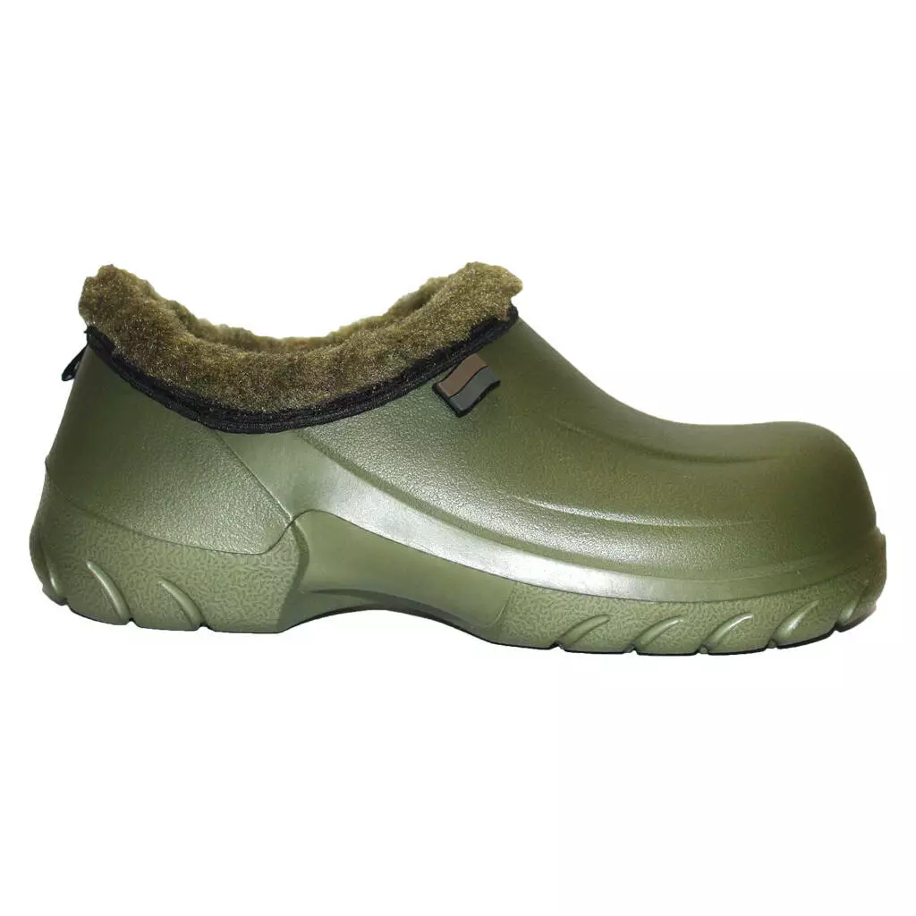 Чоловічі НАПІВОБШИТІ утеплені калоші - взуття на прохолодну дощову погоду і сльоту в осінньо-зимовий період. Калоші суцільнолиті, виготовлені з сучасного полімеру ЕВА. Край взуття обшитий штучним хутром, всередині знімна двошарова хутряна/повстяна устілка.