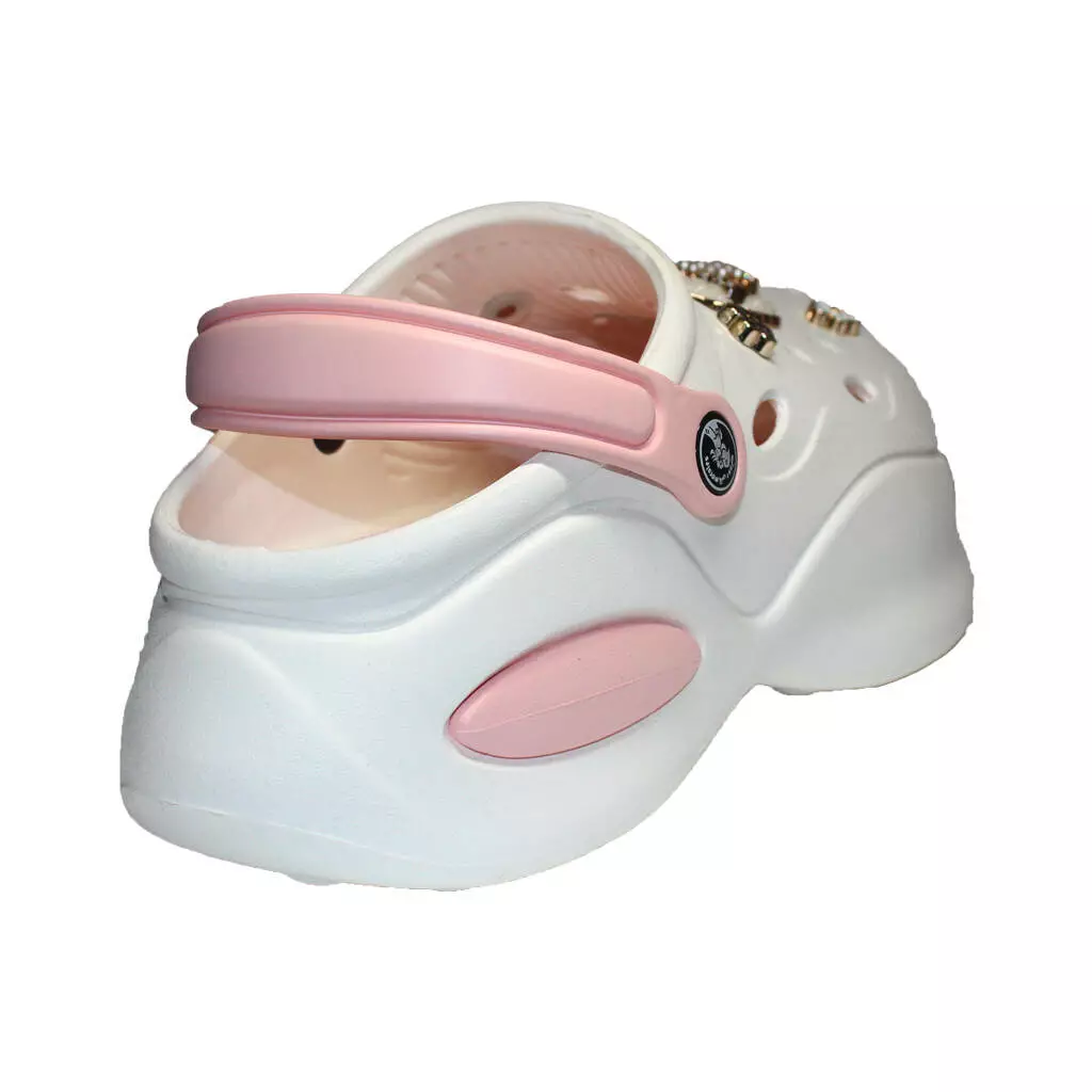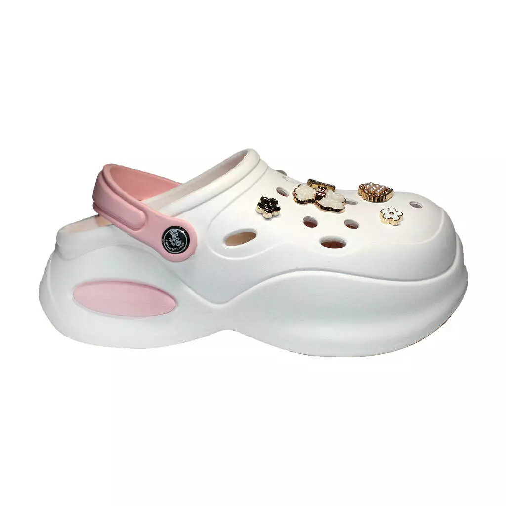 Стильні сабо на танкетці виготовлені з сучасного полімерного матеріалу ЕВА, що забезпечує легкість і комфорт. Завдяки чудовій амортизації та рифленій нековзкій підошві кожен крок стає максимально зручним. Унікальні джибітси з ПВХ у вигляді ведмедиків і лапок надають взуттю оригінального вигляду.
