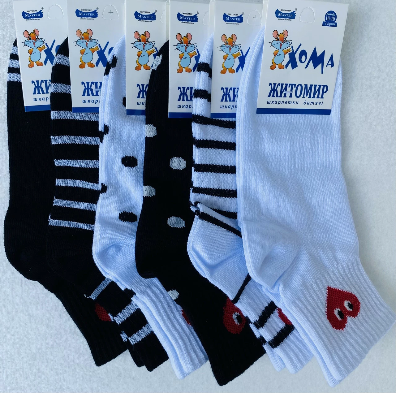 16-18, Шкарпетки ДИТЯЧІ ДЕМІСЕЗОННІ ТМ "ХОМА" дівчинка сердечка смужка горох¶ 2186