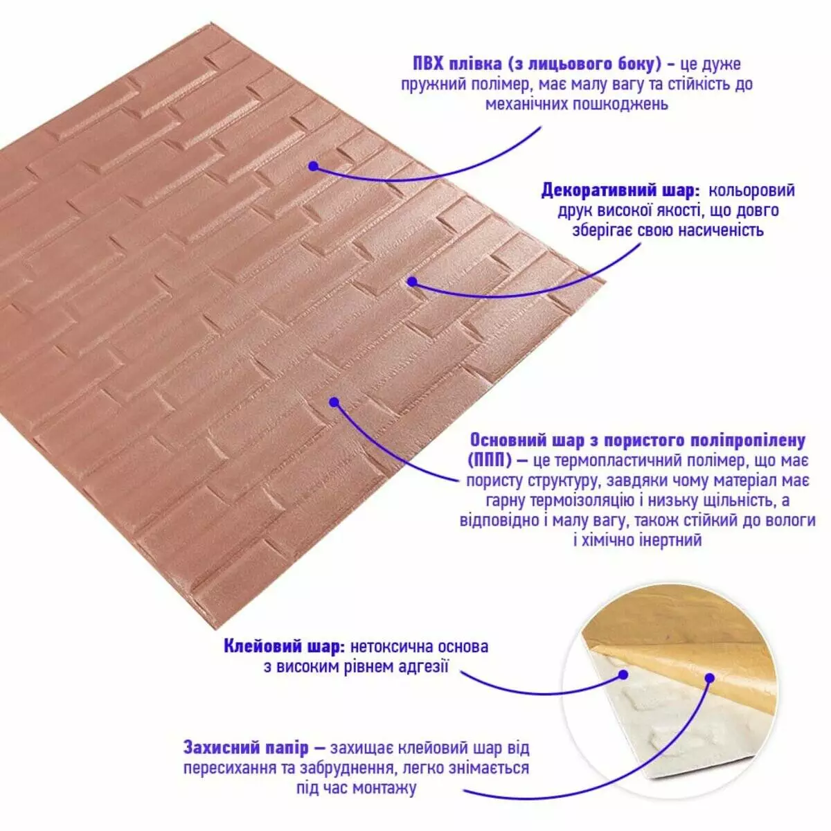 - Клейовий шар: нетоксична основа з високим рівнем адгезії.