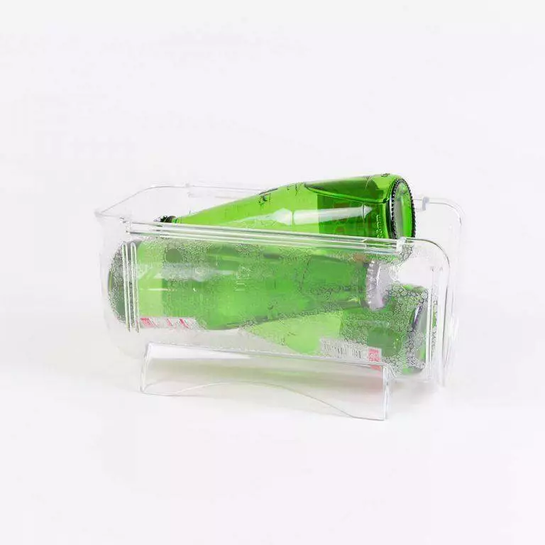 1. Доречне зберігання: органайзер розроблений спеціально для зберігання пляшок та інших напоїв у холодильнику. Він забезпечує ідеальну організацію простору, дозволяючи вам легко розміщувати пляшки вертикально, що дозволяє заощадити місце та зменшити ризик розливу.