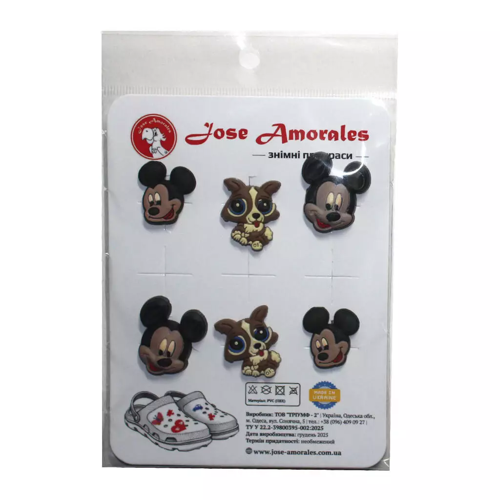 Набір джибітсів «Друзі з мультфільму» — це яскраві декоративні значки з мультяшним мишеням та милим цуценям, які створюють дружній, позитивний настрій і стають стильним акцентом.