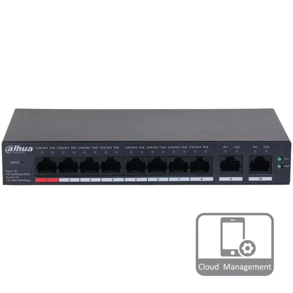 Потужність PoE 1 порт 90Вт, 2-8 порти 30Вт (бюджет 110 Вт)