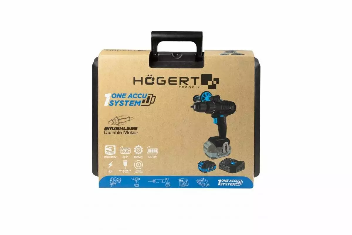 <h2>Аккумуляторная дрель-шуруповерт 18В Hogert HT2E246-B14DD: