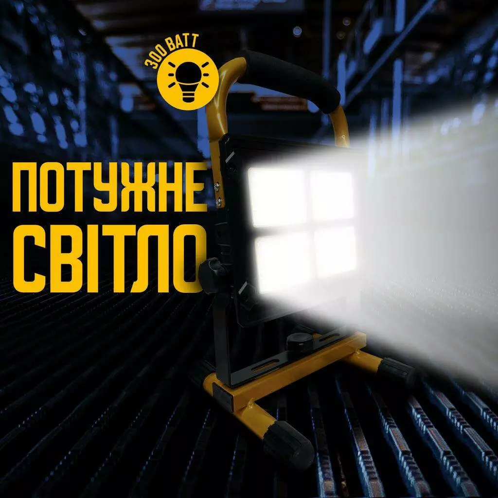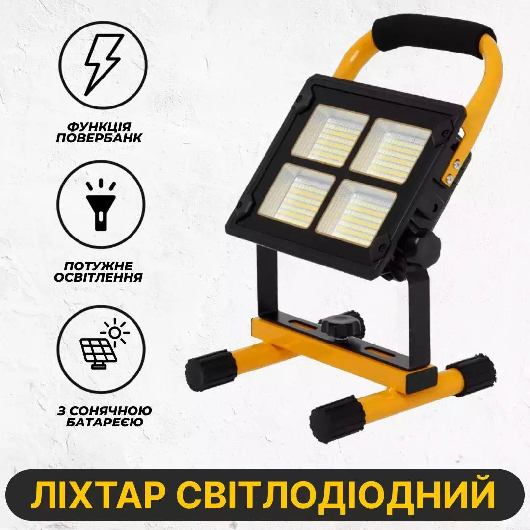 Аккумуляторный LED светильник Leovin LE-024 300W прожектор аварийный с солнечной панелью и павербанком