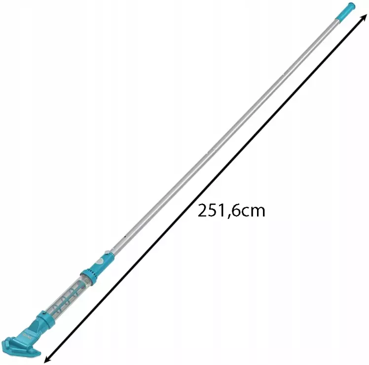 Беспроводной садовый пылесос для бассейна оснащен легкой палкой с возможностью соединения сегментов, что позволяет легко регулировать длину. Благодаря этому вы легко доберетесь до труднодоступных мест на дне и стенках бассейна, не наклоняясь и не погружаясь. Идеальное решение для комфортной и тщательной уборки.