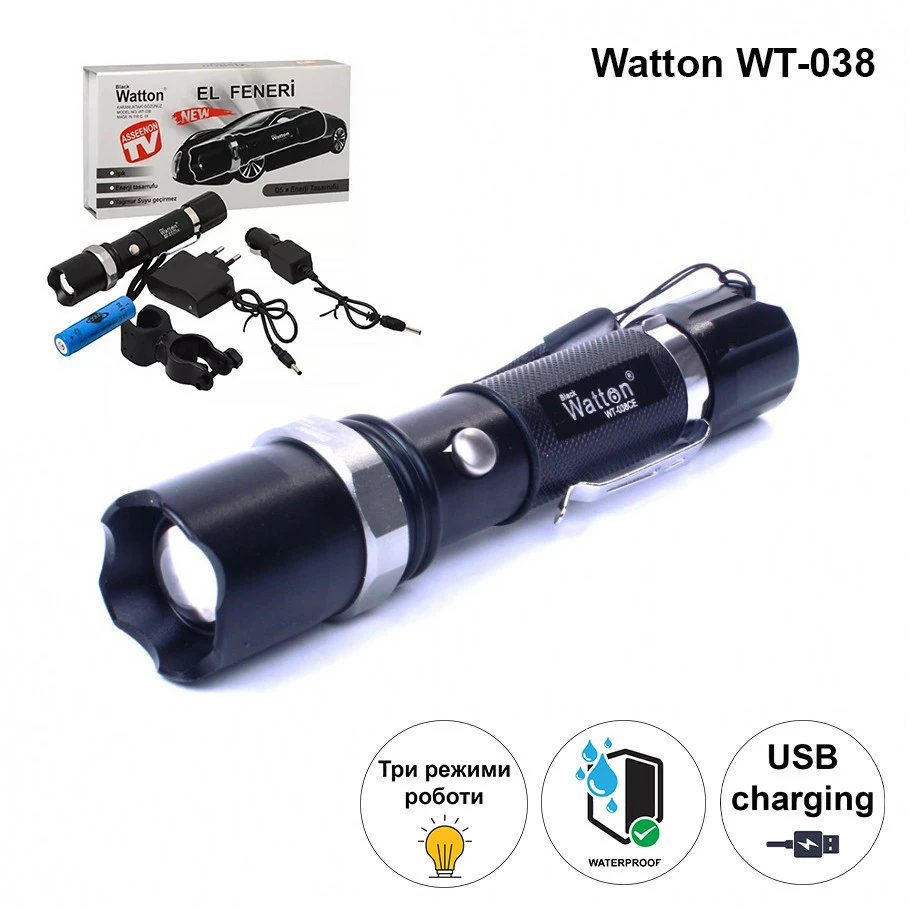 Фонарик Watton WT-038 идеально подходит для похода, кемпинга, езды
