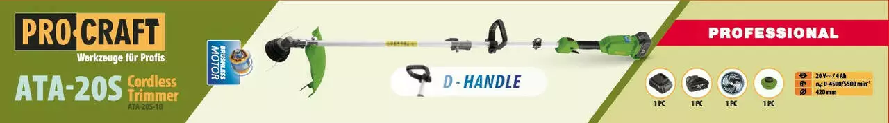 Аккумуляторный триммер Procraft ATA20S (1 АКБ и ЗУ) D-ручка