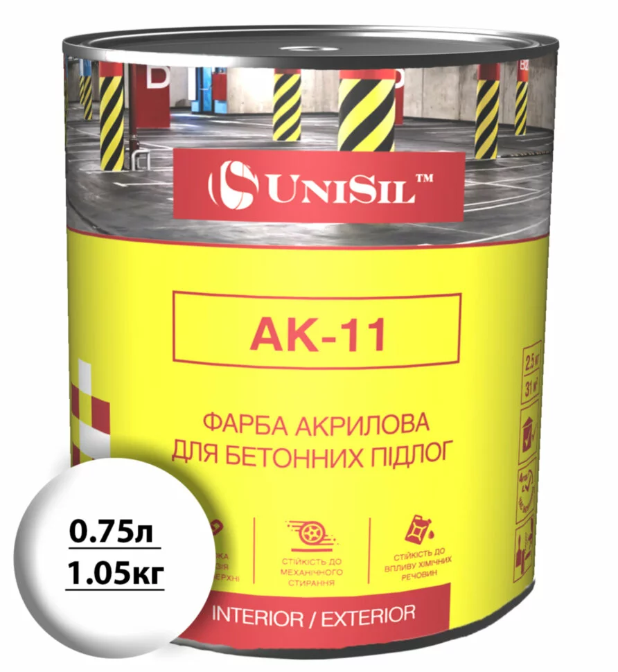 Акрилова фарба для бетонних підлог Unisil АК-11 Біла 0.75л /1.05кг, Белая 0.75л/1.05кг