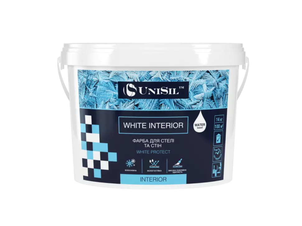 Акриловая краска для стен и потолков Unisil White Interior, 14 кг