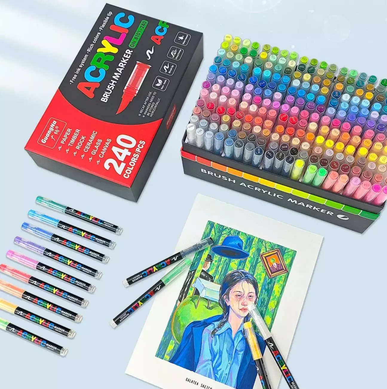 Акрилові маркери GuangNa Brush GN-8101 з м’яким пензликом — це ідеальний інструмент для творчості, який підійде як дітям, так і дорослим. Завдяки м’якому пензлевому наконечнику (brush tip) маркери дозволяють легко створювати яскраві і детальні роботи. Підходять для малювання, скетчингу, декору, DIY-проєктів та розпису на різноманітних поверхнях. Маркери швидко висихають, не змиваються водою і абсолютно безпечні у використанні — не містять токсичних речовин і не мають різкого запаху.