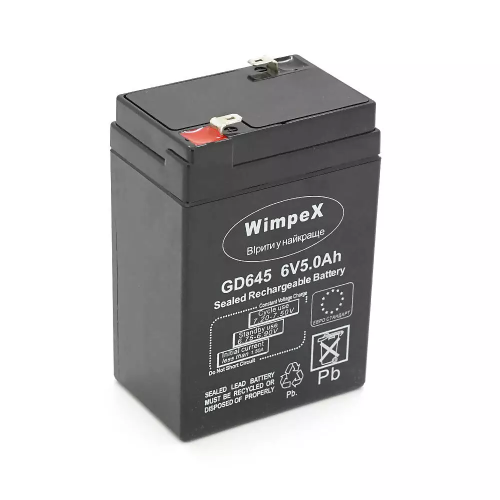 Акумуляторна батарея Wimpex WX-645 6 V 5Ah (70 x 47 x 100 (105)), 0.60 kg, Black, Q20