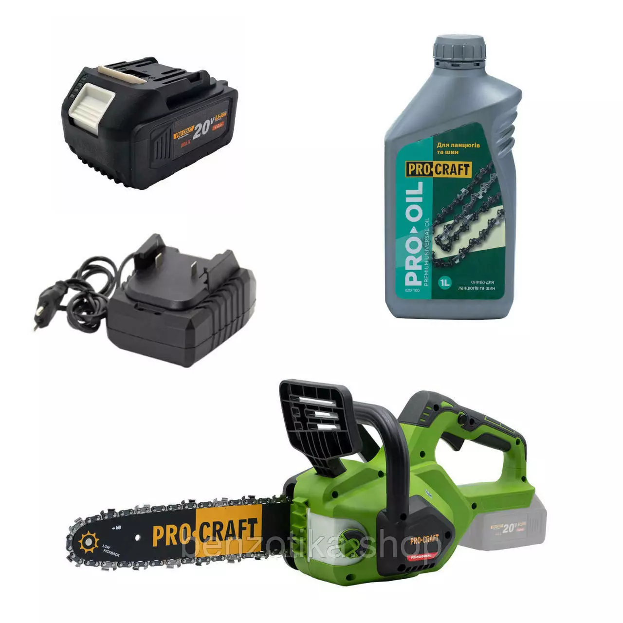 Аккумуляторная цепная пила Procraft PKA38 + 1 акб 4Ач + ЗУ charger20/1 + Олива для цепи 1л