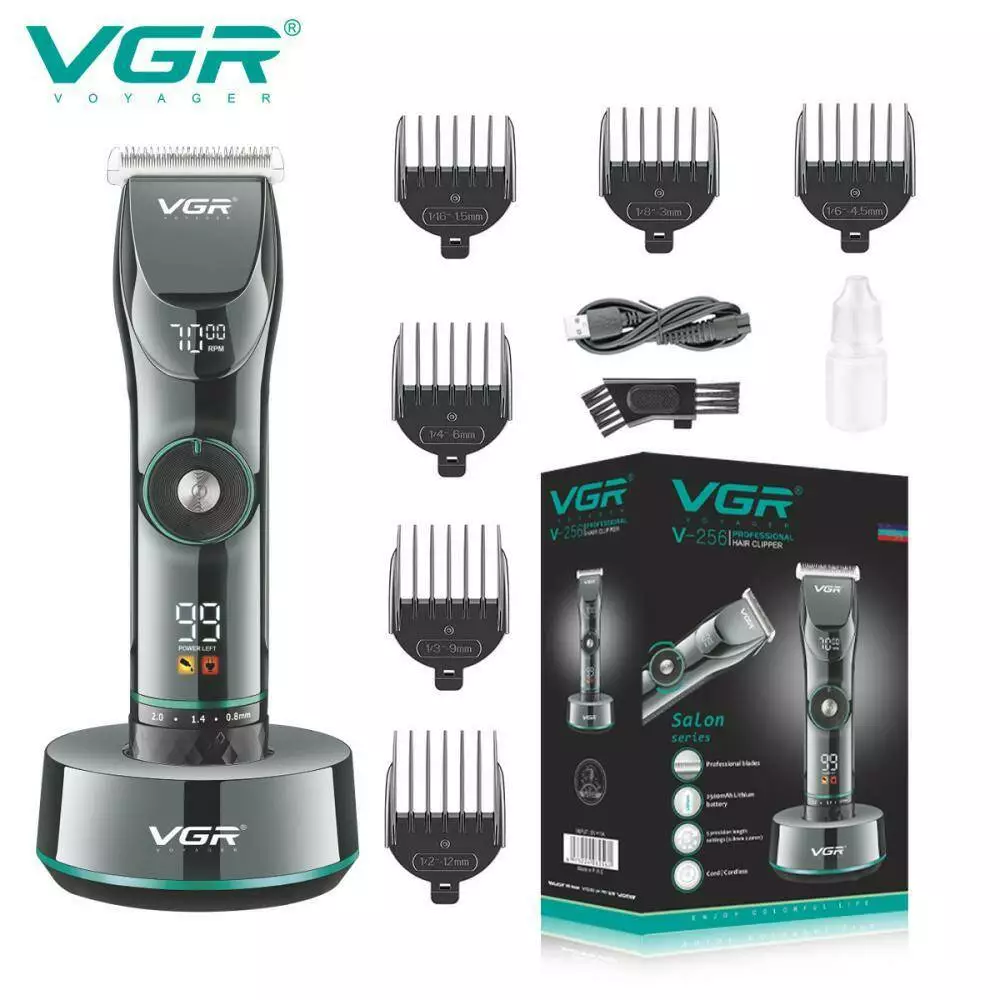 Акумуляторна машинка для стриження (clipper) VGR V-256, 6 насадок, LED display