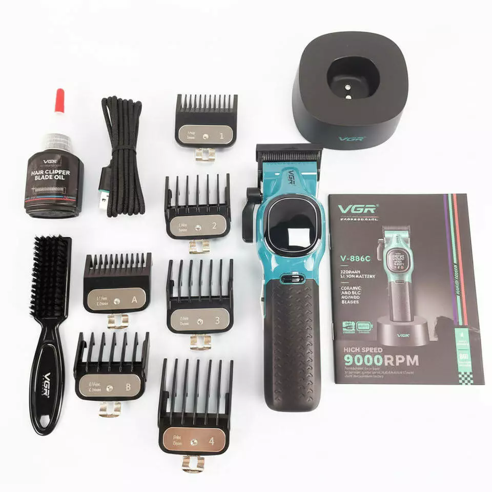 Акумуляторна машника для стриження (clipper) VGR V-886C GREEN, LED display, 9000RPM