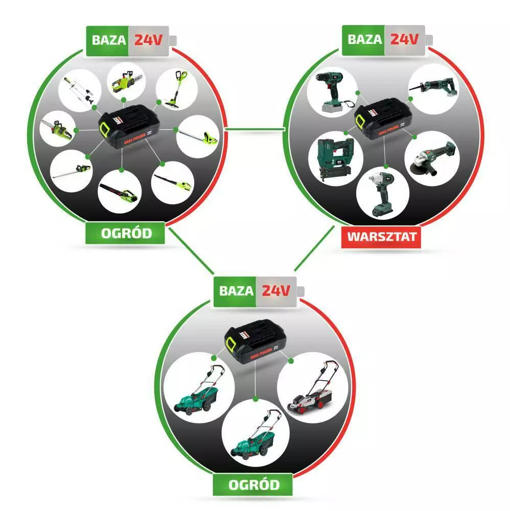 Акумуляторна шабельна пилка Foxtail, 24 В Бездротова пилка Foxtail Акумулятор та зарядний пристрій не увімкнені Напруга: 24 В Потужність: E2500 Мотор: безщітковий Сумісні моделі акумуляторів: BP-5839, BP-5837 Підходяща модель зарядного пристрою: BP-5840 Увімкнено Пила Лезо Переваги акумуляторної пилки BASS POLSKA Багатофункціональна пила по дереву та металу Акумуляторна пилка Bass Polska з можливістю використання змінних полотен замінить лобзик, бензопилу для обрізання гілок, ручну циркулярну пилку та пилку для розпилювання деревини. Він також дозволить вам різати метал, гіпсокартон та пластик. Акумуляторний різак для спеціальних завдань Шабельна пилка Foxtail покаже себе неперевершеною в теслярських і столярних роботах, в яких вона замінить платну пилку, і для таких робіт, як: швидке різання труб і арматурних стрижнів врівень з поверхнею стіни, різання болтів і гайок у твердих -доступні місця, наприклад, і багато іншого. Висока якість виготовлення та зручність роботи Неймовірна універсальність використання лобзикової пилки гарантується гнучкими пиляльними полотнами, малими значеннями кроку полотна та високою частотою ходу. Шабельна пилка може працювати в будь-якому обраному положенні. Вся шабельна пилка під час роботи спирається на матеріал, що розрізається регульованою завзятою ніжкою. Регулювання завзятої лапки дозволяє встановити кут і глибину різання та забезпечує стабільний, точний контакт інструменту з поверхнями різної форми. Чому цей BASS POLSKA без акумулятора та зарядного пристрою в комплекті? База 24 В це акумуляторні інструменти Bass Polska, що працюють від однієї батареї. Наша остання серія акумуляторних інструментів для майстерні та саду відрізняється можливістю живлення кожного інструменту від того самого акумулятора з тривалим терміном служби. Акумулятор і зарядний пристрій для шабельної пилки ви купуєте окремо, що виявиться для вас оптимальним рішенням, якщо ви тільки розширюєте свій набір садового інструменту або комплектуєте обладнання для майстерні. Що Ви отримуєте, вибираючи безліч інструментів та один акумулятор? Професіоналізм – найвища якість виробництва кожного інструменту серії, створеної для вимогливих користувачів. Налаштуйте інструмент під свої вимоги - у міру зростання ваших вимог зростає колекція інструментів. Широкий вибір інструментів цієї серії дозволяє створити набір інструментів, який на 100% підійде саме вам. Економія - вам більше не потрібно купувати кілька акумуляторів та зарядних пристроїв для більшої кількості інструментів. Ви заощаджуєте не тільки гроші, а й місце в будинку чи майстерні!