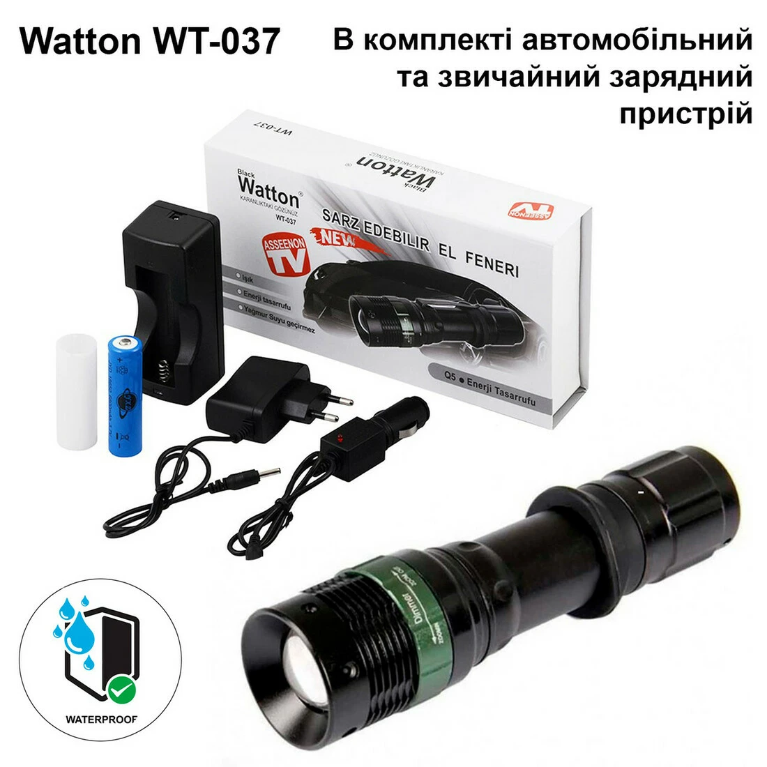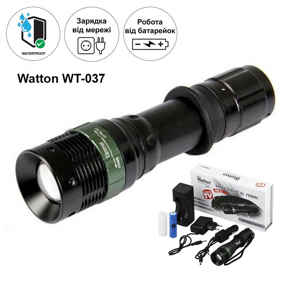 Акумуляторний ліхтарик Watton WT-037 виготовлений з алюмінієвого