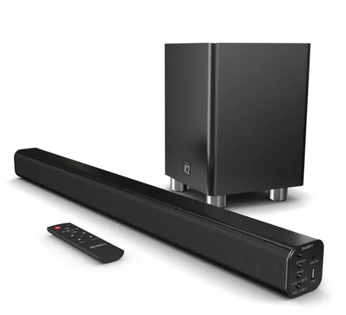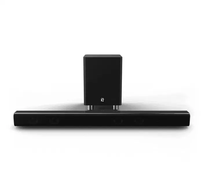 Саундбар K2 – это тонкая звуковая панель с беспроводным сабвуфером, идеально подходящая под телевизор или на стол. Используйте кнопки на боковой стороне звуковой панели или пульте дистанционного управления, чтобы регулировать громкость, настраивать эквалайзер, источник и многое другое. Идеальная звуковая панель для телевизора или компьютера, которая наполнит вашу комнату и погрузит вас в звук высокой четкости в вашем доме.