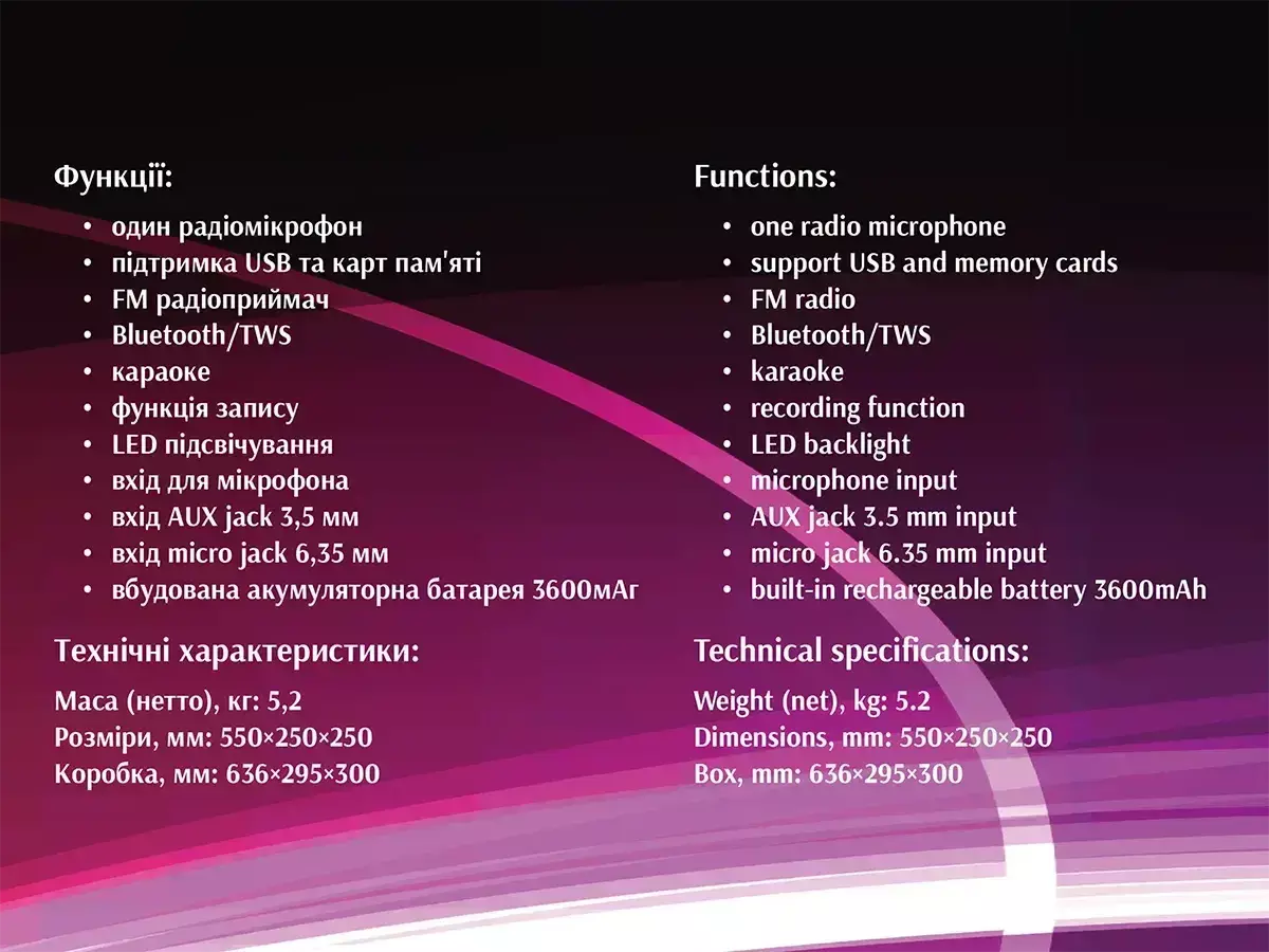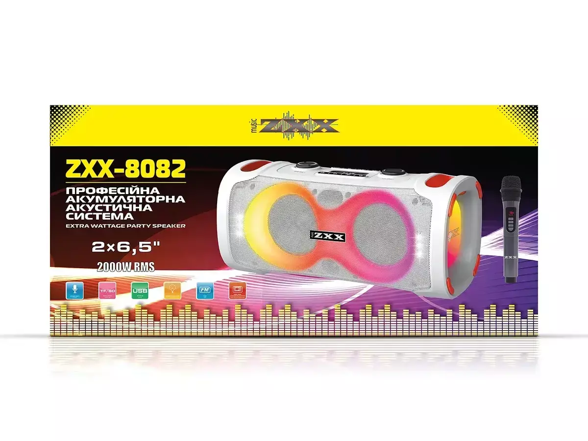 Акустична переносна колонка ZXX-8082/ 6236 60Вт 2x6,5" TWS/FM/USB/TF/BT/LED/REC/MIC (1)