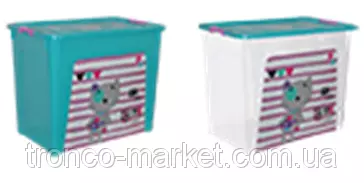 Объем емкости для хранения - 40 литров, вместительный. Яркие насыщенные цвета, удобная крышка. Декор Pet Shop - "животные" и Car " машинки" является наклейкой IML , которая проливается вместе с основной формой, что гарантирует ей долгожительство :) Не стирается и не отрывается.