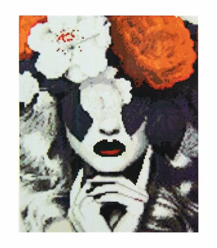 Комплектація: полотно з клейовим шаром на підрамнику, лоток для сортування страз, пінцет, стилус, липка маса для стилуса, різнокольорові стрази,схема.