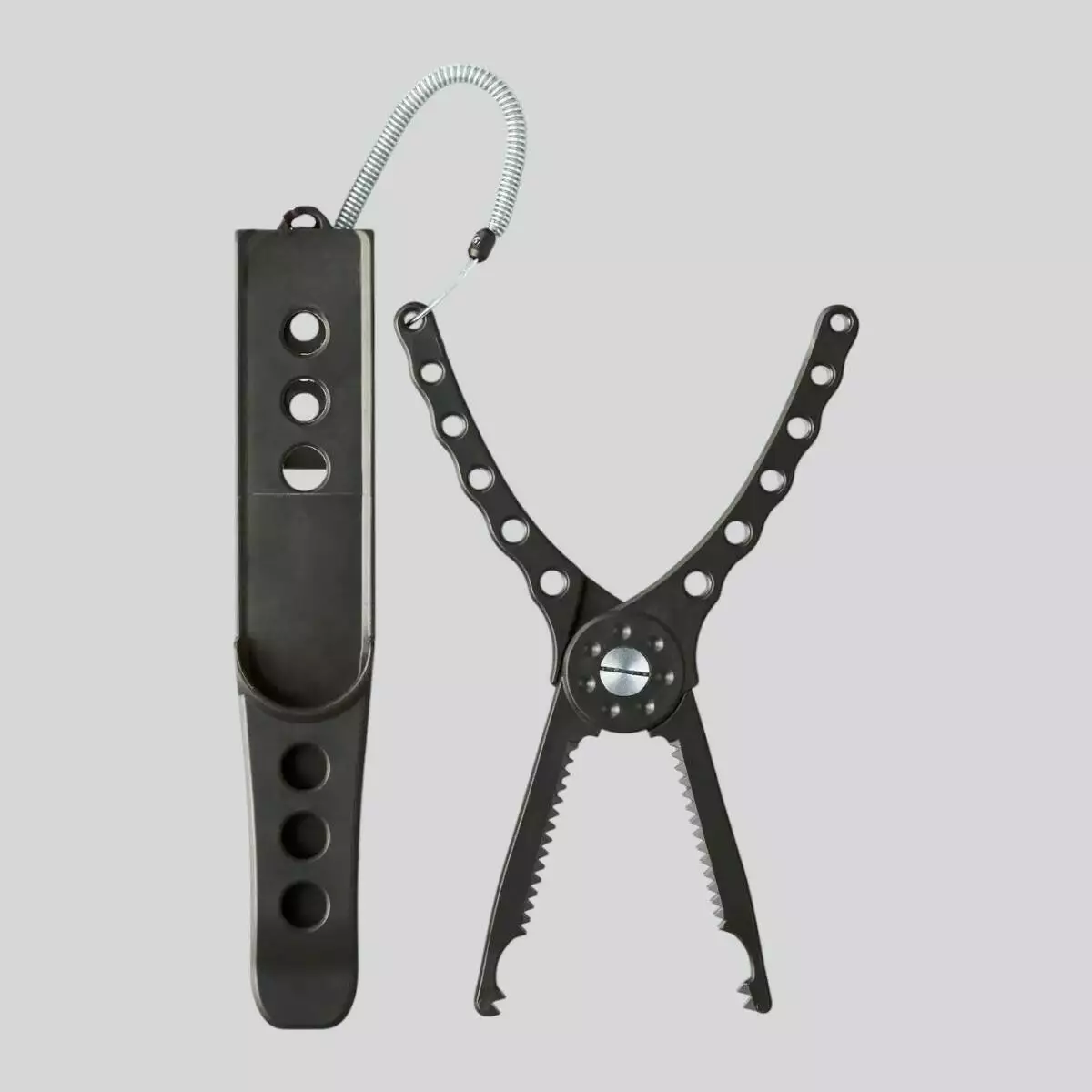 Отвори в корпусі зменшують вагу, не впливаючи на міцність. Пружинний шнур запобігає випадковій втраті інструмента під час риболовлі. Захват ідеально підходить для спінінгової, морської та хижої риболовлі, де важлива надійність і контроль над рибою.