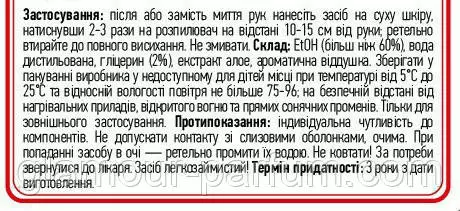 СКЛАД: ЕtOH (більш ніж 60%),ведення дистильоване, гліцерин (2%)