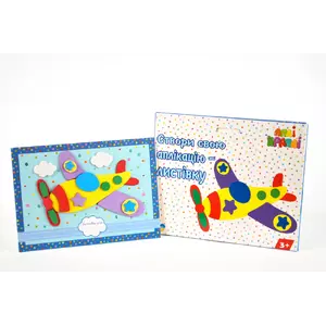 Аплікація-листівка "Літак" - це дитячий набір в який входить картонна листівка з нанесеним на неї контуром для підклеювання деталей. Також після поклейки композиції з дитиною можна її підписати в спеціальному полі.