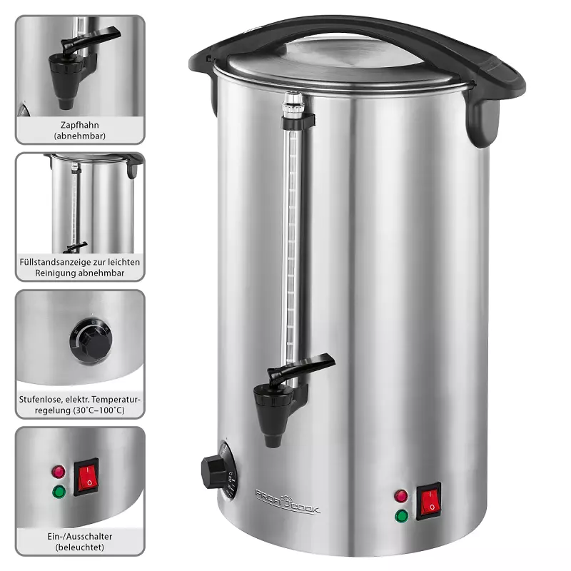 Вміщає до 35 чашок по 0,2 л кожна, що робить його ідеальним для