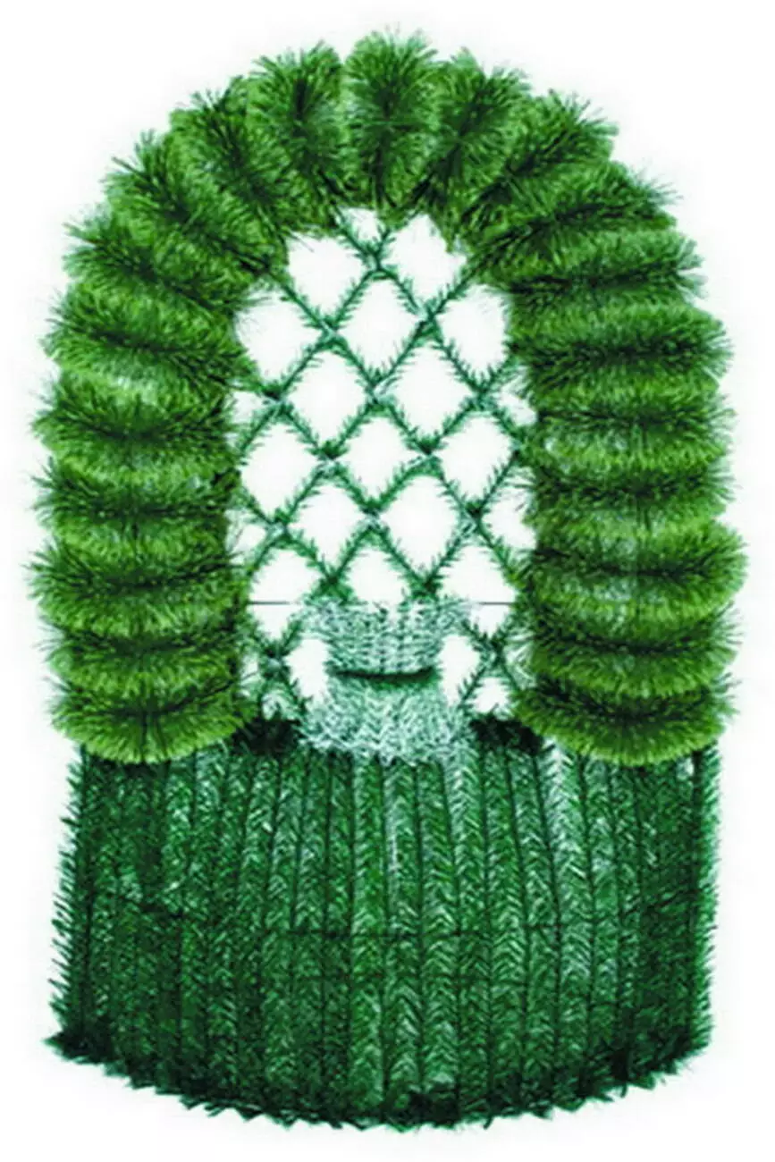Арка зі штучної хвої заплетена двокольоровой сіткой, білой вазой у