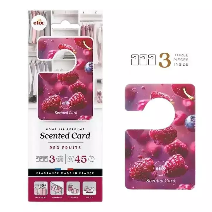Scented Card Red Fruits – премиальный ароматизатор для дома, разработанный специально для того, чтобы наполнить ваши шкафы, ящики и просторы для хранения сочным ароматом свежих ягод. Компактная карта также подходит для обуви и дорожных сумок, даря приятную атмосферу в каждом уголке вашего дома.