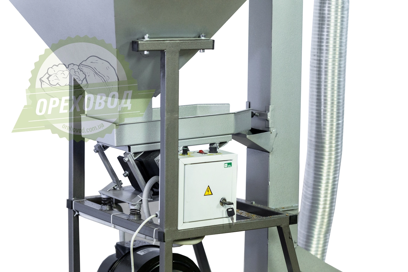 Аспирационная колона - установка, которая отделяет скорлупу, перегородки, мусор и пыль от ядра грецкого ореха. Аспирационная колона ускоряет процесс переработки, сокращает время переборки колотого ореха и увеличивает качество готового ядра. Виброподача полностью освобождает от ручной подачи ореха в колону, а значит сокращает количество ручного труда и ускоряет процесс.