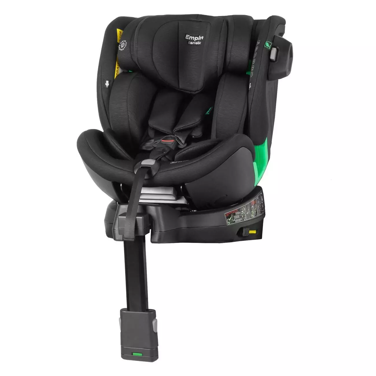 Універсальне дитяче автокрісло відповідає сучасному стандарту I-Size. Обладнано захистом від бічних ударів, системою кріплення Isofix, опорною стійкою і поворотом на 360°. Директива ECE R129 передбачає обов'язкове перевезення дітей до 15 місяців проти ходу руху. Крісло має подвійний захист від бічних ударів (елемент додаткового захисту від бічного удару поглинає енергію удару та знижує навантаження на шию та голову дитини). Вік 0-12 років для росту від 40 до 150 см. Установка: спиною проти руху для дитини від 40 до 105 см, по ходу руху від 75 до 150 см. Максимальний кут нахилу 141. Чохол автокрісла виконаний з гіпоалергенного текстилю з використанням матеріалу Memory Foam. 5-ти точкові ремені безпеки з індикатором, який сповіщає вас звуковим сигналом про розстебнуті ремені. Бампер платформи регулюється відповідно до нахилу спинки автомобільного сидіння, забезпечує плавне та безперешкодне обертання сидіння та додатковий простір для ніжок малюка. Довжина автокрісла попереду назад: 51 см / 72 см (лежачи) Ширина автокрісла зліва направо: 45 см Висота автокрісла зовнішня: від 57 до 79 см Висота спинки сидіння внутрішня з підголівником: від 48 до 71 см Глибина сидіння: 30 см Ширина сидіння внутрішня в найширшому місці: 38 см Ширина підголовника внутрішня у найширшому місці: 23 см