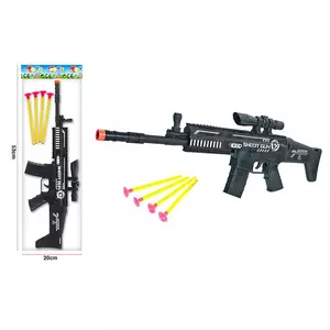 Іграшковий автомат з відмінною деталізацією сподобається хлопчикам, які цікавляться зброєю. Сучасна модель з легкою вагою та тематичним забарвленням стане чудовим доповненням колекції іграшкової зброї. Автомат стріляє патронами на присосці, які входять до комплекту. Особливості: - іграшковий автомат, який стріляє патронами на присосці; - зручні рукоятка та м’який курок, який не потребує сильного натискання; - оптичний приціл; - виконаний з первинного пластику, який відрізняється міцністю; - відрізняється легкою вагою.