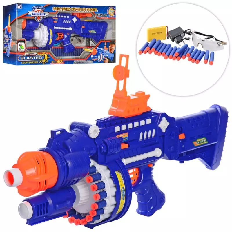 Фотография 1 товарной позиции интернет-магазина детских игрушек www.smarttoys.com.ua Автомат SB250 акум., м'які кулі-присоски 70 шт., окуляри, кор., 62-31-15 см.