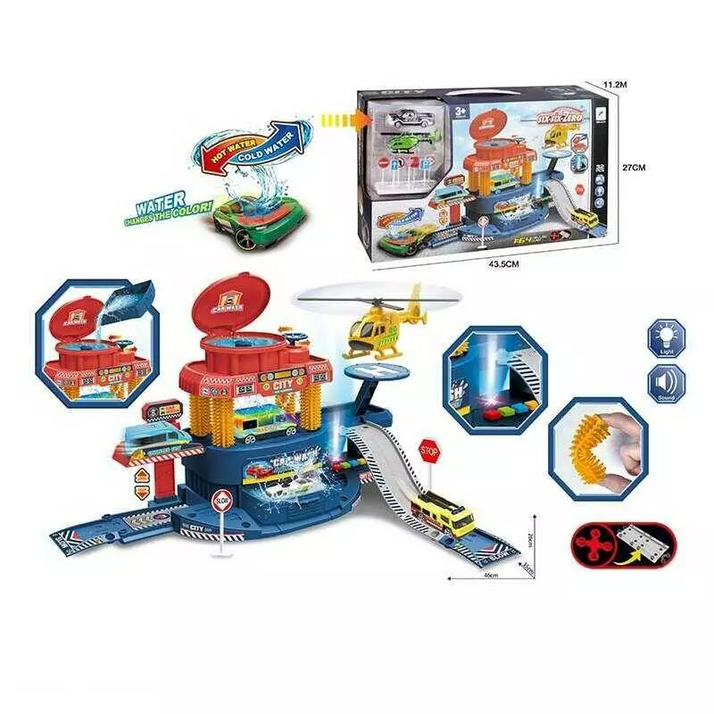 Автомийка 660 a-319 (18/2) звуки, підсвічування, металопластикова машинка, змінює колір від тепла, механічний підіймач, гелікоптер, наліпки, в коробці