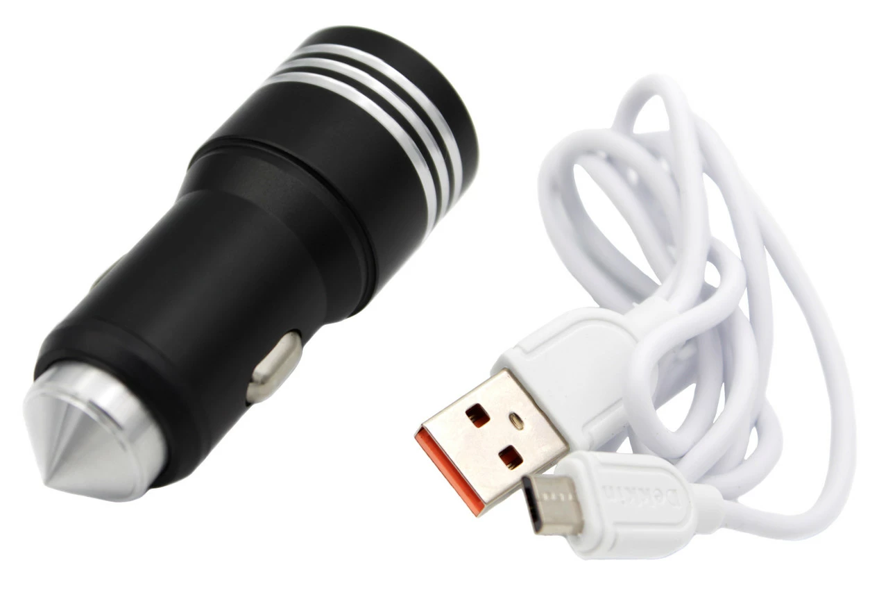Автомобильное зарядное устройство в прикуриватель от компании Dekkin на 2 USB разъем и шнуром MicroUSB