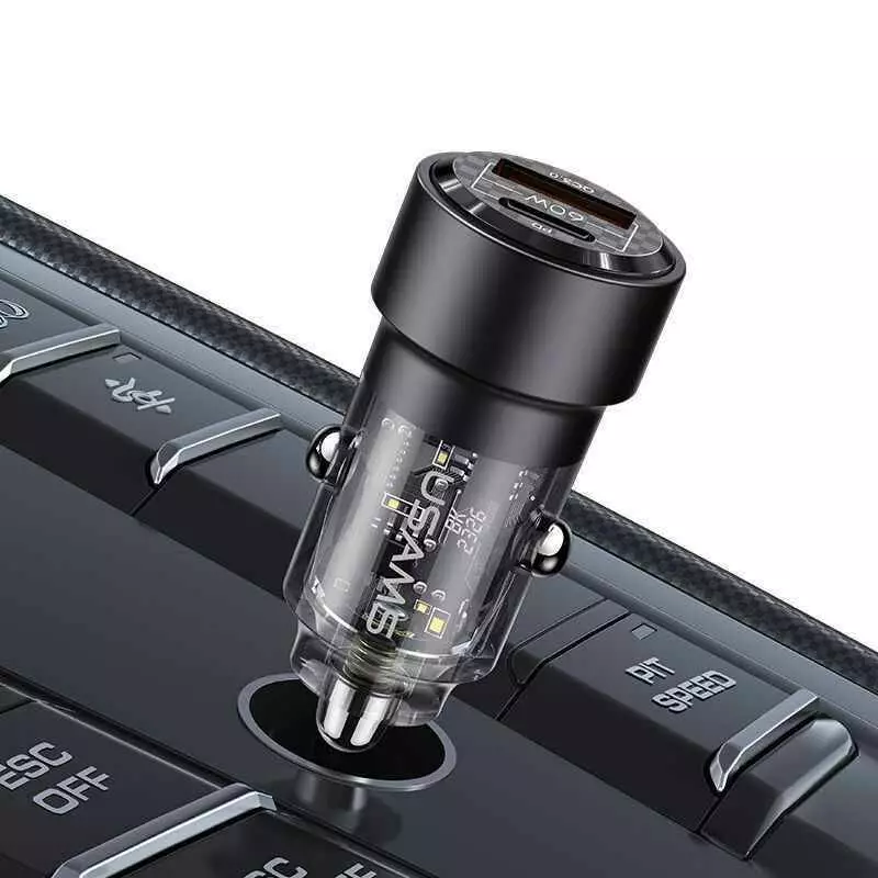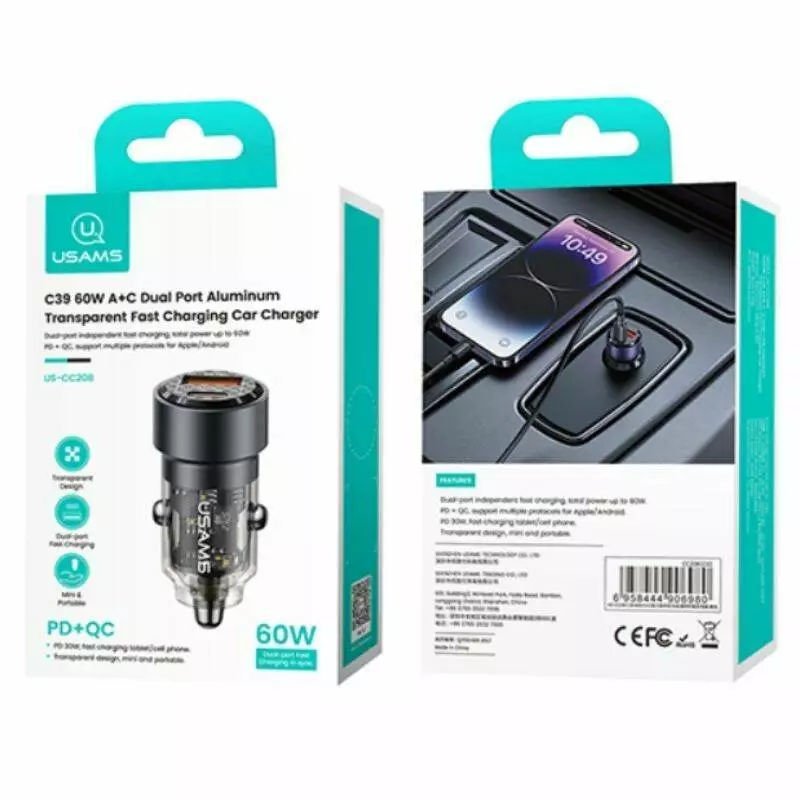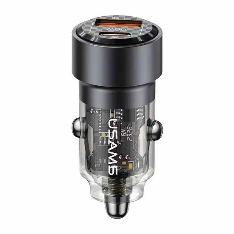 Автомобильное ЗУ Usams C39 60W A+C Dual Port Aluminum Transparent Fast Charging Car Charger