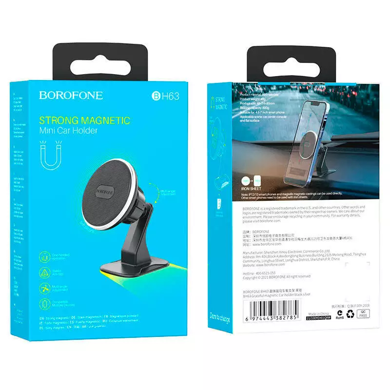 Автотримач BOROFONE BH63, кріплення на торпеду, магніт, Black, Box