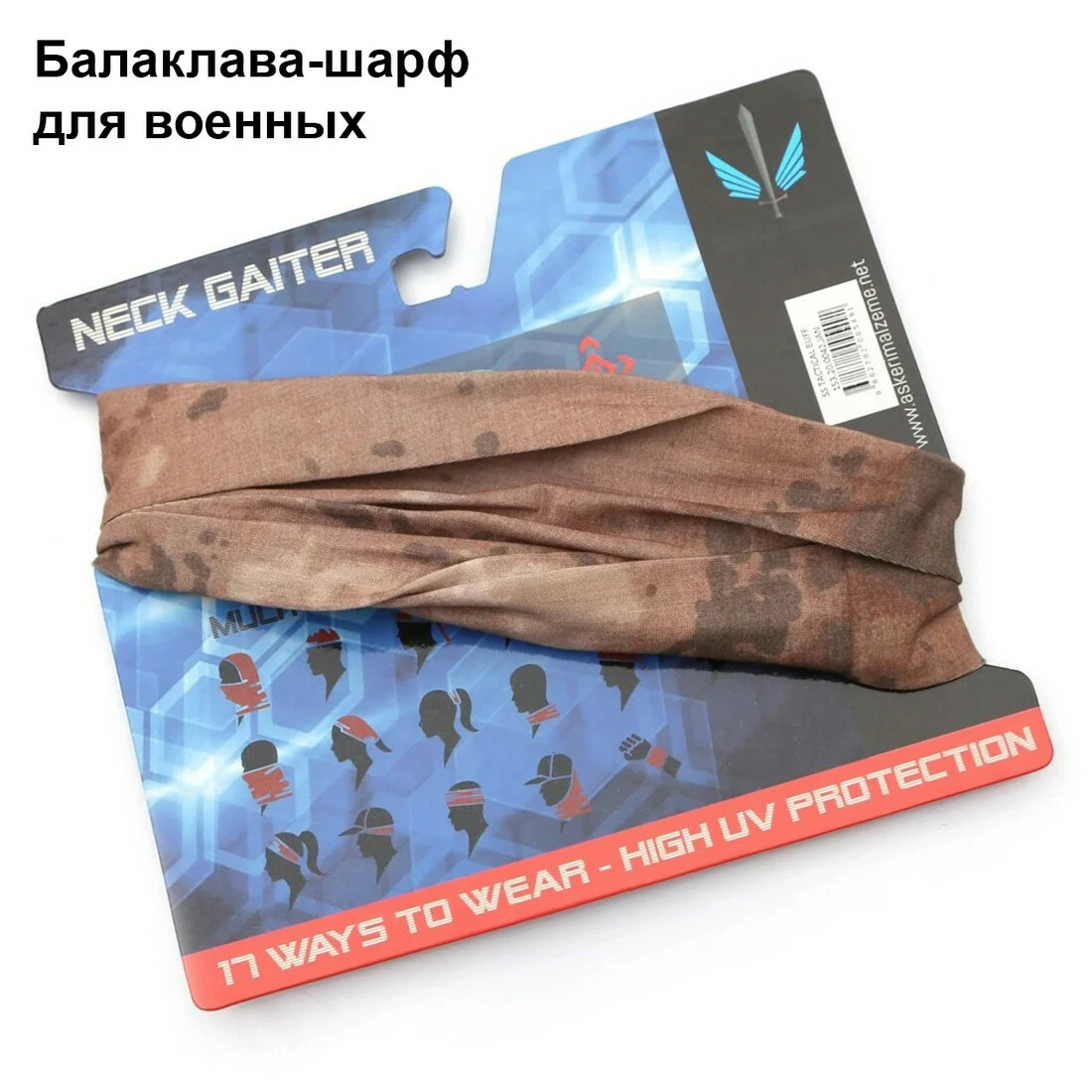 Бафф трубовидной формы защищает шею и лицо от ветра и пыли.