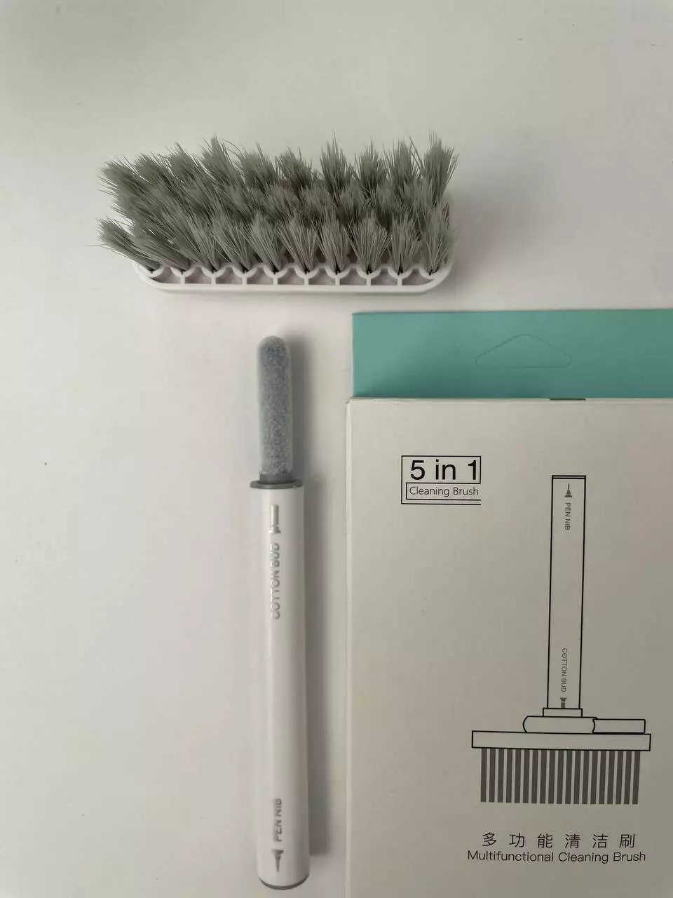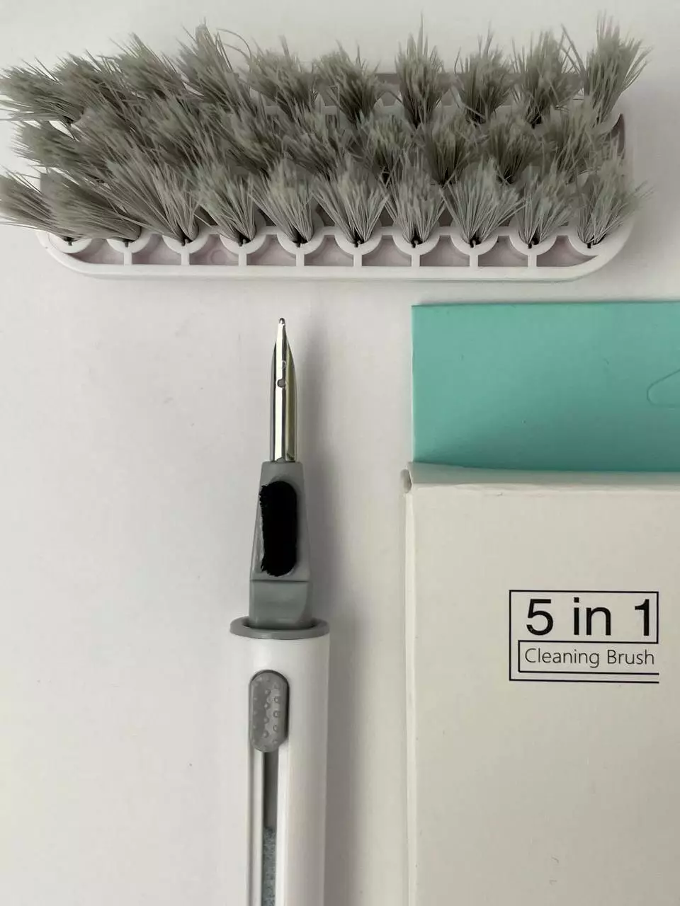 Багатофункціональна щітка для чищення гаджетів 5 в 1 – це компактний і зручний набір, створений для дбайливого догляду за вашими пристроями. Вона ідеально підходить для очищення клавіатур, навушників, телефонів, планшетів, фотоапаратів та іншої електроніки з важкодоступними місцями. Завдяки продуманій конструкції й набору насадок, щітка ефективно видаляє пил, бруд та інші забруднення, не пошкоджуючи поверхню техніки. М’який наконечник, покритий мікрофіброю на 360°, дозволяє ретельно очищати дрібні деталі, а щільна щіточка дбайливо прибирає пил зі сітки динаміка та клавіш.