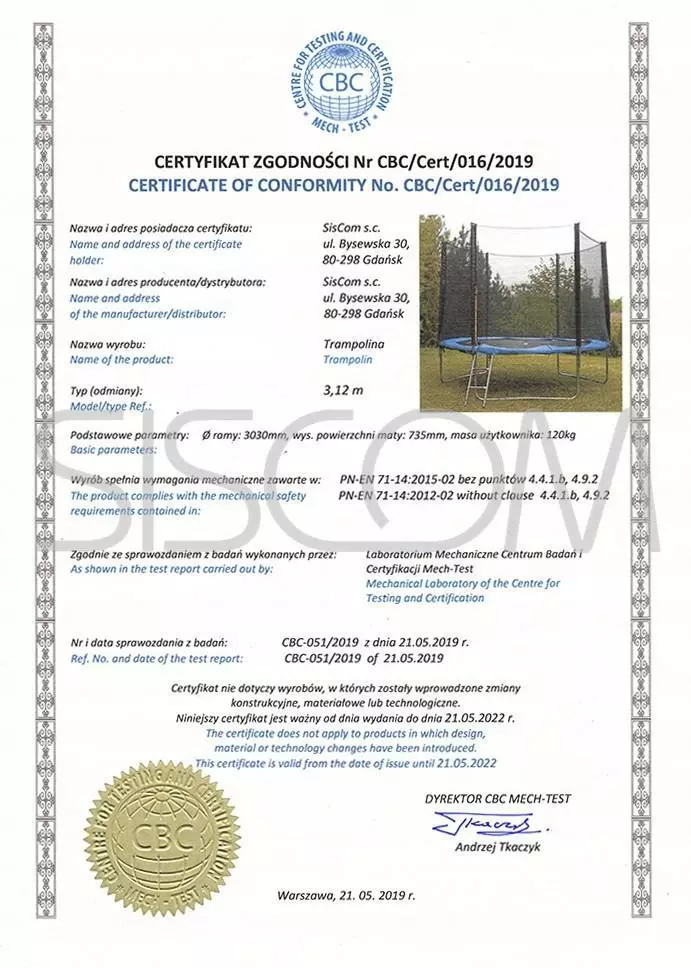 Многослойное покрытие пружины: пружины покрыты очень прочным материалом, облицованным губкой, которая обеспечивает защиту от погодных условий и защищает прыгающих людей, обеспечивая безопасность.