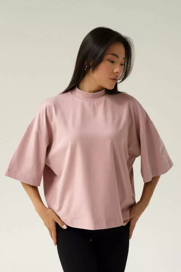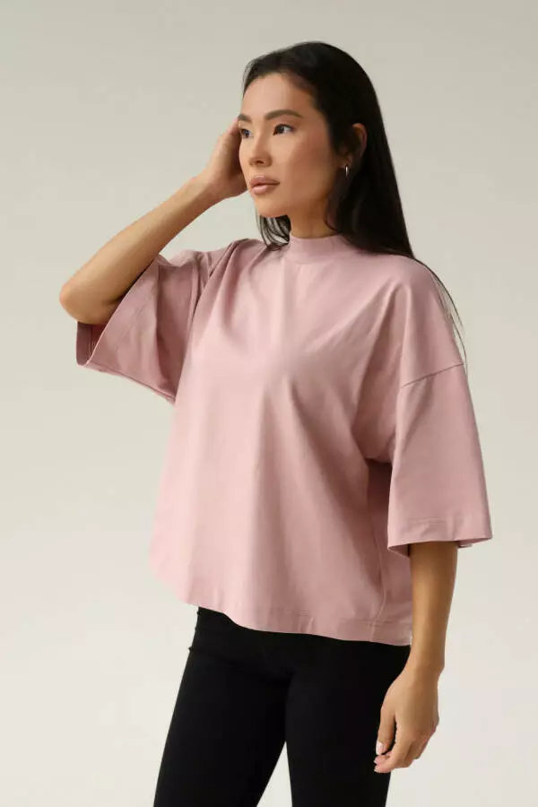 Бавовняна футболка жіноча оверсайз з подовженим рукавом German Volf Рожевий M(44) 23164