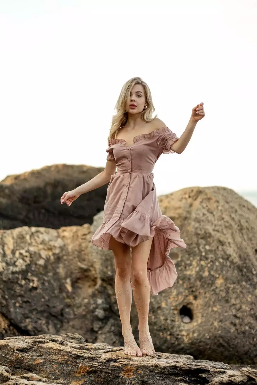 Ніжна сукня MIRANDA в романтичному стилі з відкритими плечима з легкої бавовни, що робить акцент на ніжках, максимально підкреслюючи жіночність.