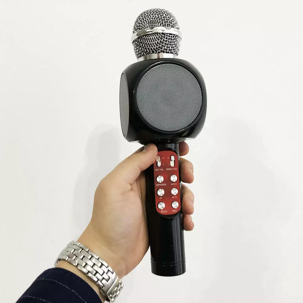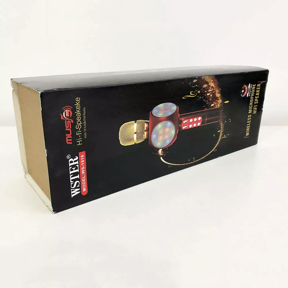 Беспроводной микрофон WS-1816 – это оригинальное устройство объединившее в себе вокальный Bluetooth микрофон и универсальную стерео колонку. Микрофон может стать отличным инструментом для начинающих вокалистов или средством скрасить приятный вечер в компании друзей. Отличительной особенностью данной модели является красочная светодиодная подсветка динамиков (при желании отключается), которая дополнит атмосферу праздника и привлечет внимание к поющему.