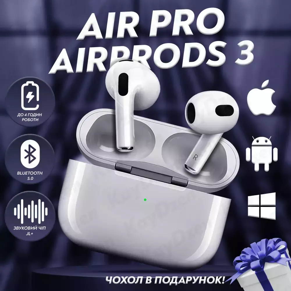 Беспроводные наушники Airpro airpods 3 TWS (Chip JL+) Белый + Подарок Чехол