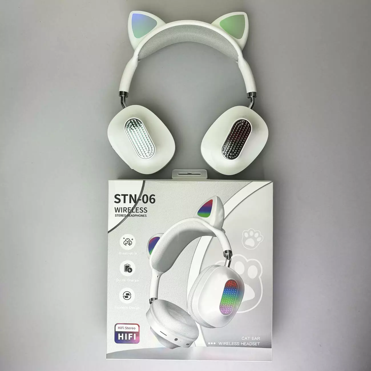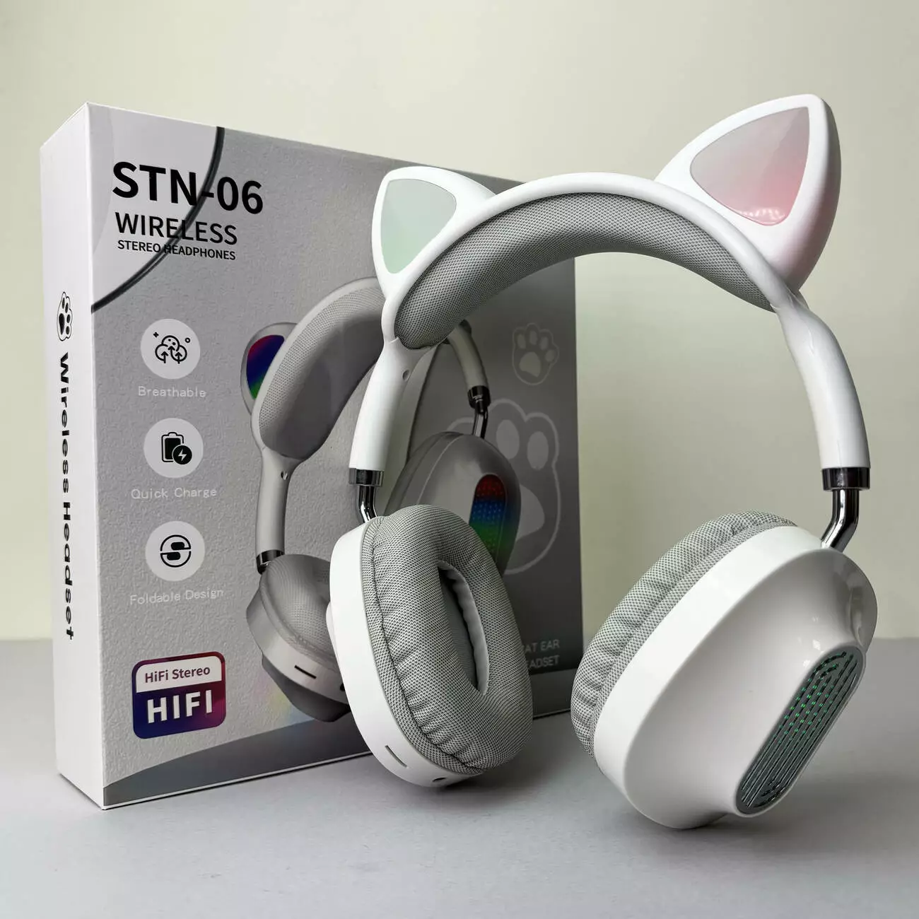 Беспроводные наушники Cat Ear RGB STN06 – отличная модель стильных детских наушников, покоряющих своим качеством и необычным дизайном. В наушники встроена цветная подсветка, что сделает каждое прослушивание любимых песен праздником. Благодаря качественным аккумуляторам, наушники могут работать до 7 часов в режиме прослушивания и в режиме разговора. Также наушники поддерживают microSD карты, что придает значительное преимущество.